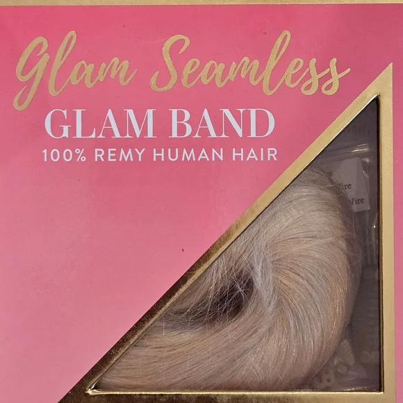 Enhance your look with the Glam Seamless Remy Human Glam Band Hair Halo Extension. This blonde extension offers a seamless blend for a natural appearance. Perfect for adding volume and length effortlessly.New in box.16 inch band on clear wire.Mix of platinum ash blonde 60 and blonde 24.A great investment!